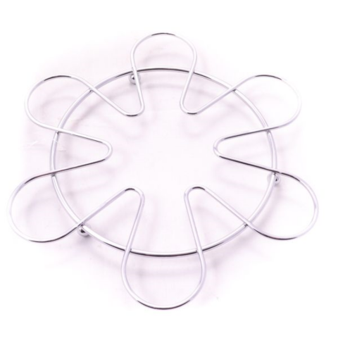 Különleges alakú elegáns krómozott fém edényalátét. Ajánlott meleg tálak, edények alátétének a terített asztalon.