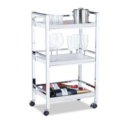 Krómozott acél tálaló zsúrkocsi 3 kivehető tálcával 77,5x45x29 cm bútor termékleírás