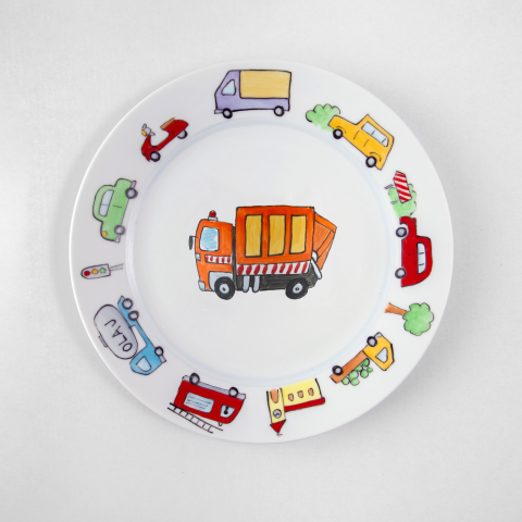 Kukásautós kistányérKézzel festett porcelán tányér. mely felirattal névre szólóvá is tehető.A porcelánt festés után 820 fokon égetem ki, mikrohullámú sütőbe betehetők, mosogatógépben tisztíthatók.A körben festett járművek elhelyezése, típusa és színe véletlenszerű, nem feltétlenül azonos a képen láthatóval.
