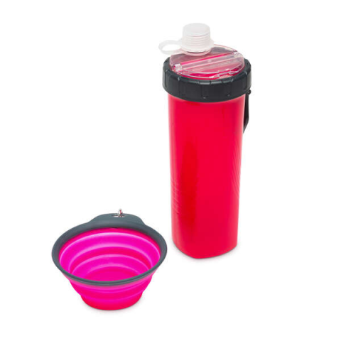 Kulacs hordozható kutyatállal - Rózsaszín kutyatál 1 kép