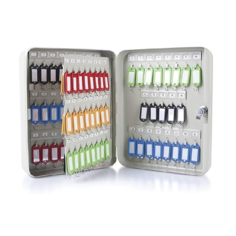 Kulcsszekrény, 93 kulcs, Donau - fémből készült - biztonsági zárral, 2 db kulccsal és bilétákkal - falra szerelhető, tartozékokkal