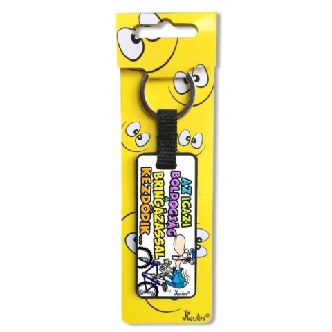 Kulcstartó, Az igazi boldogság a bringázással kezdődik Műanyag 2,5 x 7,5 cm
