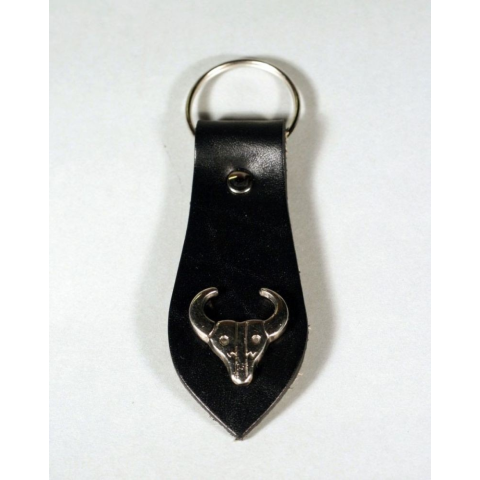 Kulcstartó - bikafej Bőr alapon fém dísz. Bőr része: 8,5 x 3,5 cm