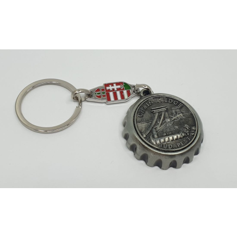 Budapest feliratú, fém, kupak formájú kulcstartó. Budapest feliratú, fém, kupak formájú kulcstartó, Lánchíd motívummal. Kedves meglepetés külföldi ismerőseink, barátaink számára.