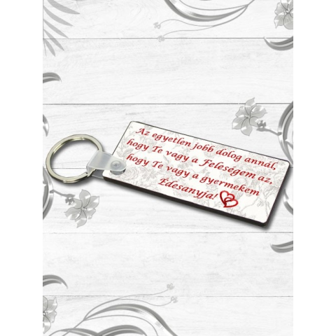 Kulcstartó édesanyáknak, Anyák napi ajándék. A egyetlen jobb dolog annál, hogy Te vagy a feleségem az, hogy Te vagy a gyermekem édesanyja. Anyaga: MDF fa, mérete: 4x2,8 cm