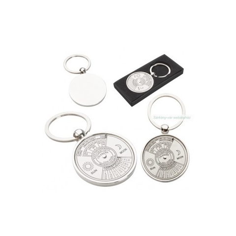 Fém kulcstartó kerek, forgatható öröknaptárral 2060-ig. Fekete kartondobozban szállítjuk. Méret: 80×45 mm Rendelésre: 3-10 nap!