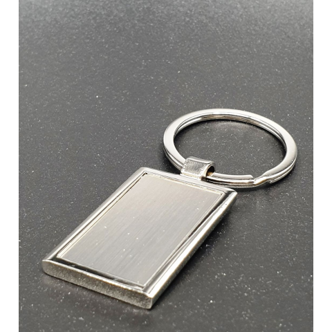 Gravírozható kulcstartó. Téglalap alakú gravírozható kulcstartó, fekete papír dobozban.