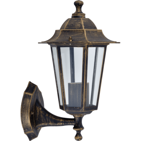 Kültéri falikar bronz színben, felfelé álló. Anyag: alumínium ház+átlátszó üveg, 1xE27 foglalat (fényforrás nélkül), 220-240V ~, 50Hz, IP44.