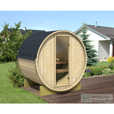 Kültéri szauna 4 fő részére A kültéri hordószaunából gyönyörű kilátás a természetre egy üvegajtón és az ablakokon keresztül. A kültéri szaunák kiváló minőségű, északi lucfenyőből készülnek. Speciálisan gyalultak a jobb megjelenés és tartósság érdekében. A