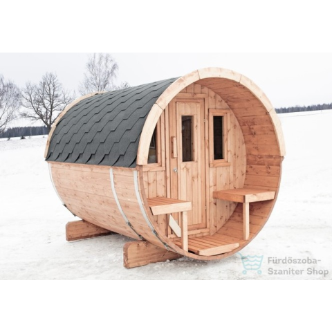 Kültéri szauna 4-5 fő részére A kültéri hordószaunából gyönyörű kilátás a természetre egy üvegajtón és az ablakokon keresztül. A kültéri szaunák kiváló minőségű, északi lucfenyőből készülnek. Speciálisan gyalultak a jobb megjelenés és tartósság érdekében.