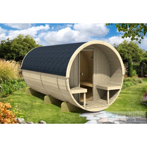 Kültéri szauna 4-6 fő részére A kültéri hordószaunából gyönyörű kilátás a természetre egy üvegajtón és az ablakokon keresztül. A kültéri szaunák kiváló minőségű, északi lucfenyőből készülnek. Speciálisan gyalultak a jobb megjelenés és tartósság érdekében.