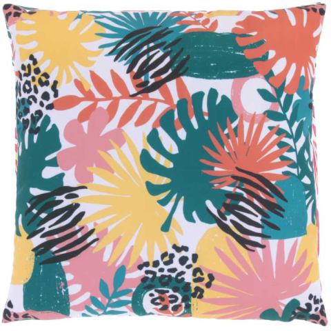 A Kültéri párna PAVELLO 45x45 cm, színes élénk színeket és trópusi energiát hoz a kültéri ülőalkalmatosságaidhoz. Vidám levélmintával, amely sárga, rózsaszín, zöld és narancs árnyalatokban pompázik, stílusos kiegészítő minden teraszra, erkélyre vagy kertbe. Az alkalmazott anyagoknak köszönhetően készen áll, hogy ellenálljon a kültéri körülményeknek.
