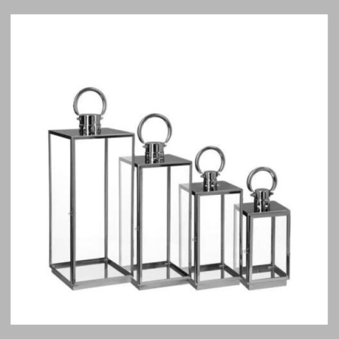 Kültéri rozsdamentes acél lámpa 4 db ezüst 130753XS: Hosszúság 14,5 x Szélesség 14 x Magasság 29,5cm S: Hosszúság 18,5 x Szélesség 18 x Magasság 40 M: Hosszúság 22,5 x Szélesség 22 x Magasság 54cm L: Hosszúság 27 x Szélesség 26,5 x Magasság 66,5cm
