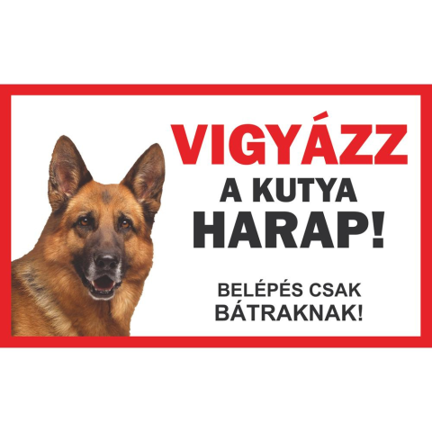 Nagyon szép látványos grafikával tervezett tábla amely figyelmezteti a látogatókat, hogy kutyát tartasz . Anyaga strapabíró lézervágott merev rozsdamentes Inox lemez amely nem rozsdásodik és évek múltán sem változik a felülete. A tábla 10x15 cm méretű,UV álló fólia nyomattal készül valamint előfúrt lyukakkal rendelkezik a könnyű rögzítéshez. A rögzítés elvégezhető bármilyen csavarral, szöggel vagy kétoldali ragasztóval attól f