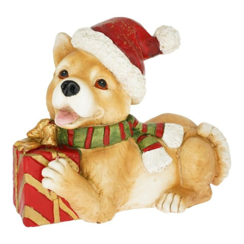 1 kép Kutya mikulás sapkában, ajándékkal fekvõ 37,5x20x30,5 cm