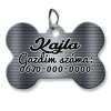 Kutyabiléta, csont alakú (tetszőleges adatokkal), fémmintás háttérrel