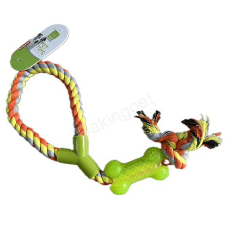 Kutyajáték csomózott kötél csonttal - Narancssárga játék kutyáknak 1 kép