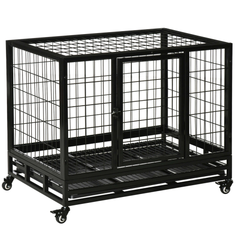 1 kép Kutyaketrec, PawHut, Vas, Beltéri/Kültéri, Kerekek, 92 × 62 × 75 cm, Fekete