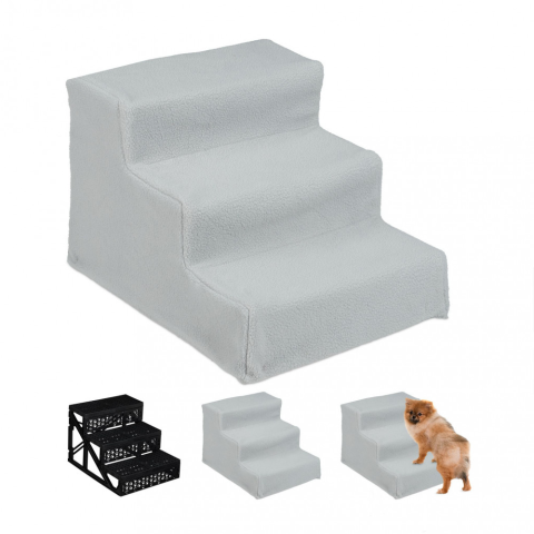 Kutyalépcső 3 lépcsőfok szürke 30x35x45 cm A kutyalépcsővel lehetővé teheti, hogy négylábú barátja kényelmesen fel- és leszálljon a kanapéról vagy az alacsony ágyról. A háziállat lépcsőt egyszerűen neki kell támasztani a megfelelő bútornak, és kedvese ugr