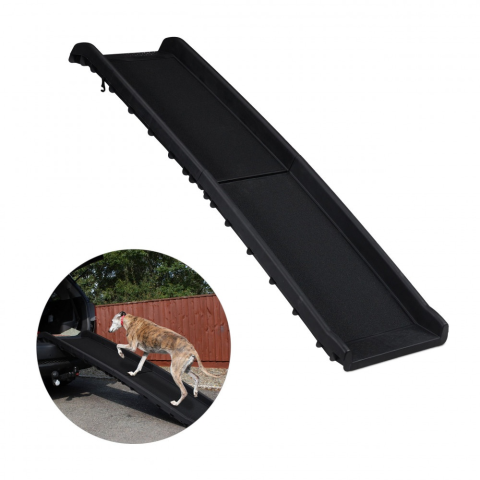 Összecsukható kutya beléptető segédeszköz az autóba Az összecsukható kutyarámpával lehetővé teheti, hogy négylábú barátai kényelmesen ki- és beszálljanak a járműbe. A rámpa egyszerűen a törzsnek támasztható, és a csúszásmentes felületnek köszönhetően lejt