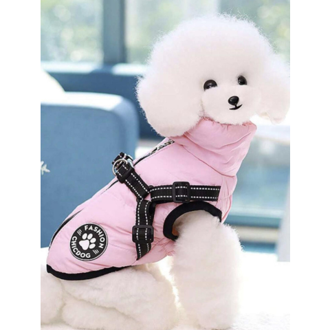 1 kép Kutyaruha - Bélelt mellény - Hátulján cipzár - Hám - 2 színben - M - rózsaszín