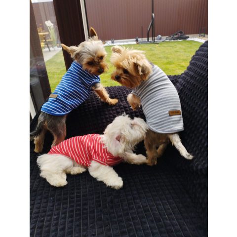 Kutyaruha - Csíkos stílusos kutyatrikó - többféle színben - L - kék kutyaruha 1 kép