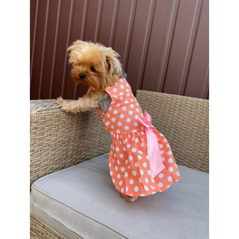 1 kép Kutyaruha - Dívatos és könnyű ruha barack színben fehér pöttyökkel és masnival - M