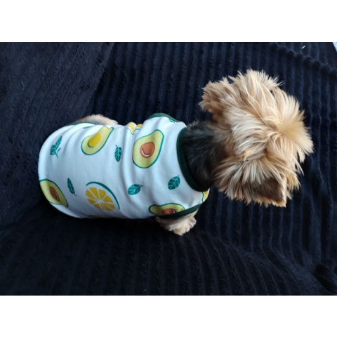 Kutyaruha - Fehér pamut trikó, avokádó mintával - M kutyaruha 1 kép