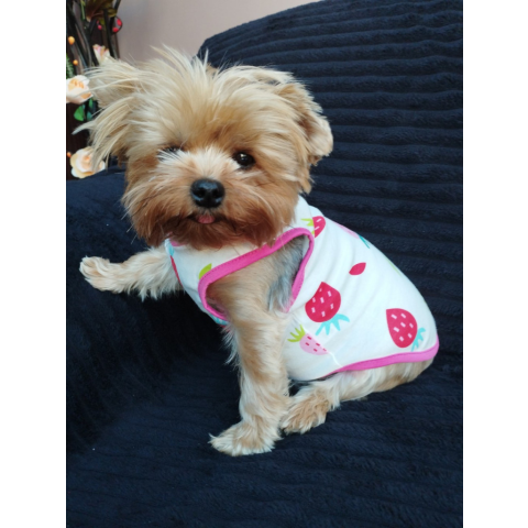 Kutyaruha - Fehér pamut trikó eper mintával - XL