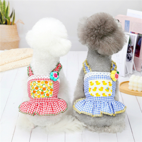 1 kép Kutyaruha - Kockás, nyári ruha, mintás zsebbel és virággal - kétféle színben - M - kék