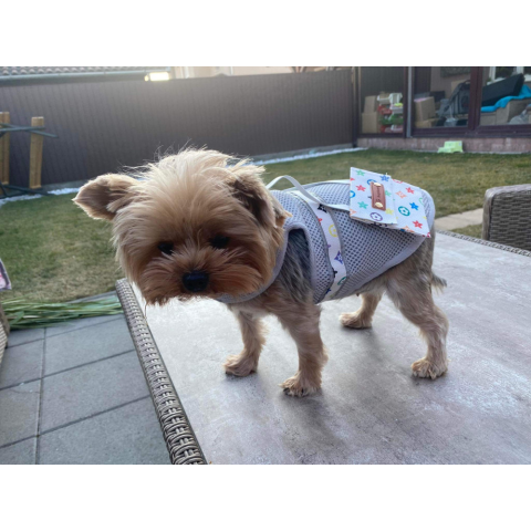1 kép Kutyaruha - Könnyű, hálós anyagú trikó, hátul stílusos kistáskával - ezüst színben - 2XL