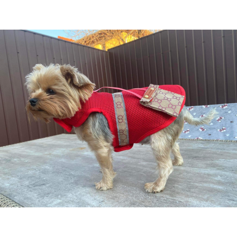 1 kép Kutyaruha - Könnyű, hálós anyagú trikó, hátul stílusos kistáskával - piros színben - 3XL