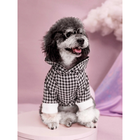 1 kép Kutyaruha - Kutyapulóver - kutyapulcsi - Fekete - Fehér minta, kapucnis - XS