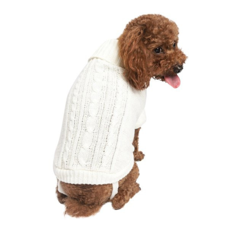 1 kép Kutyaruha - Kutyapulóver - kutyapulcsi, Kötött Garbós - meleg - fehér - XL - fehér