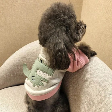 1 kép Kutyaruha - Kutyapulóver - Kutyapulcsi - Krokodil mintás - kétféle színben - L - szürke-zöld / rózsaszín krokodillal