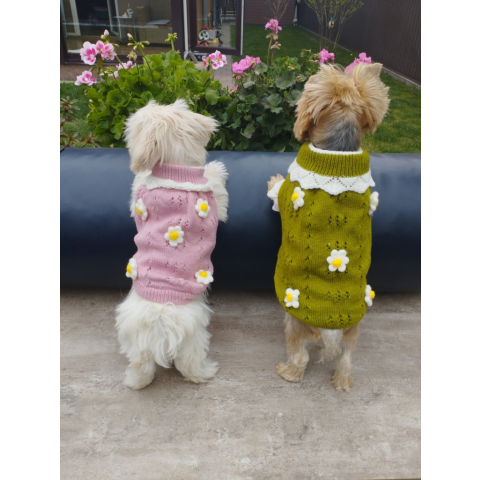 1 kép Kutyaruha - Kutyapulóver - kutyapulcsi - kutyamellény - Kötött virág mintás - 2 választható színben - L - zöld