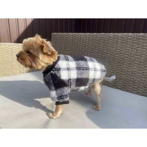 1 kép Kutyaruha - Kutyapulóver - Kutyapulcsi - Pihe Puha, plüss Pulóver - fehér-szürke színben - XL