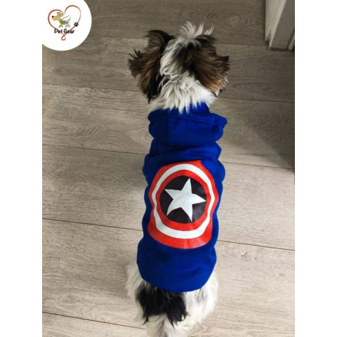1 kép Kutyaruha - Kutyapulóver - Kutyapulcsi - Puha és stílusos Amerika kapitánya mintás, kapucnis kutyapulóver - M