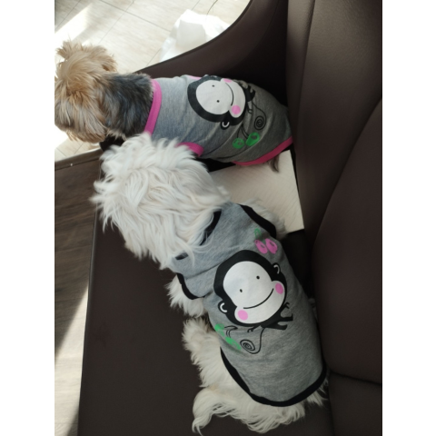 1 kép Kutyaruha - Majom mintás trikó - kétféle színben - XS - szürke/rózsaszín szegéllyel