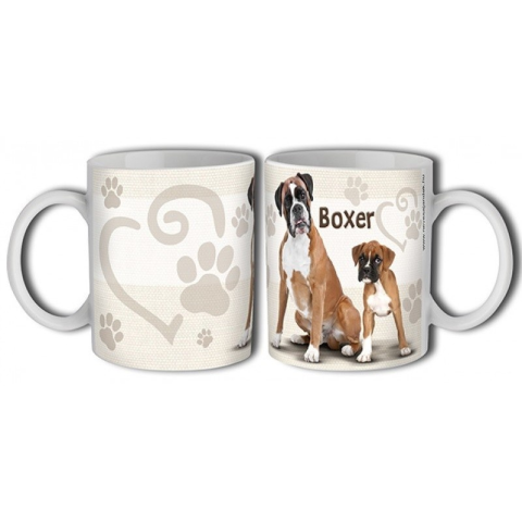 Kutyás bögre, Boxer 3 dl Befoglaló mérete: 12 x 8 x 9,5 cm Anyaga: kerámia Kiváló ajándék gazdiknak, kutyabarátoknak. Legyen neked is kutyás bögréd a legnépszerűbb fajtákból, vagy ajándékozd ismerősödnek, szerettednek. A minta nem fakul, nem repedezik.