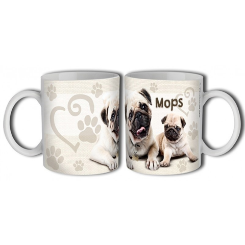 Kutyás bögre, Mops 3 dl Befoglaló mérete: 12 x 8 x 9,5 cm Anyaga: kerámia Kiváló ajándék gazdiknak, kutyabarátoknak. Legyen neked is kutyás bögréd a legnépszerűbb fajtákból, vagy ajándékozd ismerősödnek, szerettednek. A minta nem fakul, nem repedezik.