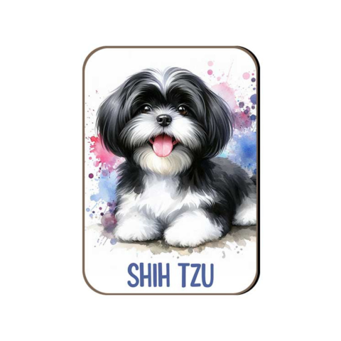 1 kép Kutyás fa hűtőmágnes, Shih-Tzu, fekete-fehér