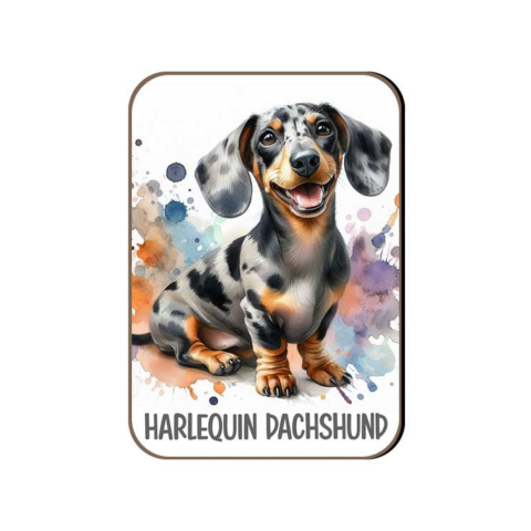 1 kép Kutyás fa hűtőmágnes, Tacskó, Harlequin