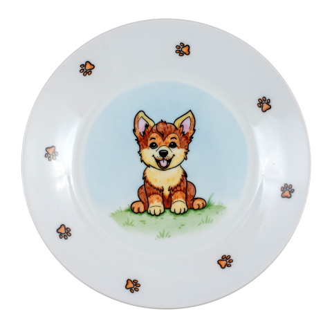 Kutyás kistányérKézzel festett porcelán tányér. mely felirattal névre szólóvá is tehető.A porcelánt festés után 820 fokon égetem ki, mikrohullámú sütőbe betehetők, mosogatógépben tisztíthatók.