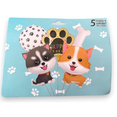 A kutyás lufi szett (5 db) tökéletes választás kutyabarát születésnapi vagy ünnepi bulikhoz. A szett 5 különböző kutyás témájú lufit tartalmaz, ideális díszítéshez. Kiváló minőségű, vidám és aranyos, így minden vendég