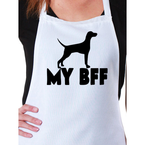 Kutyás meglepetés, My BFF kötény. Ajándék olyan ismerősödnek, akinek a kutyája a legjobb barátja is egyben. Lepd meg őt egy választható vászon köténnyel. Mérete 66x78 cm. Egyedi mintával ellátott kötényünk praktikus és stílusos választás főzéshez, gri
