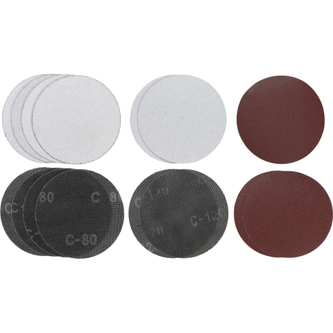 Az Einhell falmegmunkáló rendszerekhez használható, 15 részes kwb by Einhell tartozékkészlet 3 különböző csiszolópapírt és -rácsot tartalmaz, amelyek 180 mm átmérőjűek. Összesen 10 darab K-80 szemcseméretű csiszolóanyagot és 5 darab K-120 szemcseméretű cs