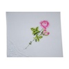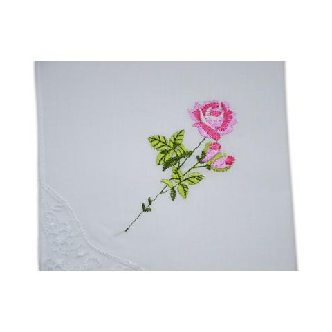 L28-13 hímzett női textilzsebkendő csipkés szegéllyel Anyag: 100% pamut Méret: kb. 28 x 28 cm Mennyiség: 1 db / tasak Színek és minták: fehér alapon színes hímzett virágminta Különleges, hímzett textilzsebkendő elegáns csipke szeg