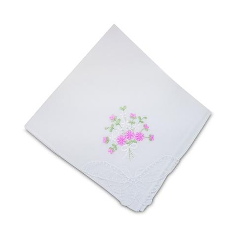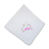 L28-1 hímzett női textilzsebkendő csipkés szegéllyel Anyag: 100% pamut Méret: kb. 28 x 28 cm Mennyiség: 1 db / tasak Színek és minták: fehér alapon színes hímzett virágminta Különleges, hímzett textilzsebkendő elegáns csipke szeg