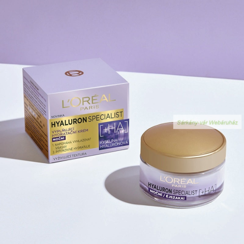 L’Oréal Hyaluron Specialist Éjszakai Arckrém minden bőrtípusra, érzékeny bőrre is. L’Oréal Hyaluron Specialist Éjszakai Arckrém 2 féle magas koncentrátumú hyaluronsav erejével: Magas molekulatömegű hialuronsav – segít hidratálni és kisimítani a bőrfelüle